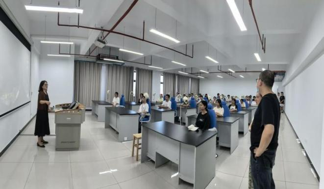 活动伊始,教研团队负责人曾英以耳镜、鼻内镜为教具,喻称其为守护人体“感知窗口”的“伙伴”,并以“我国每5人有1人患鼻炎、青少年近视率超50%”等数据,结合临床案例,点明专业价值。最后对新生提出“打牢基础、传递温暖、探索未知”三点期许。