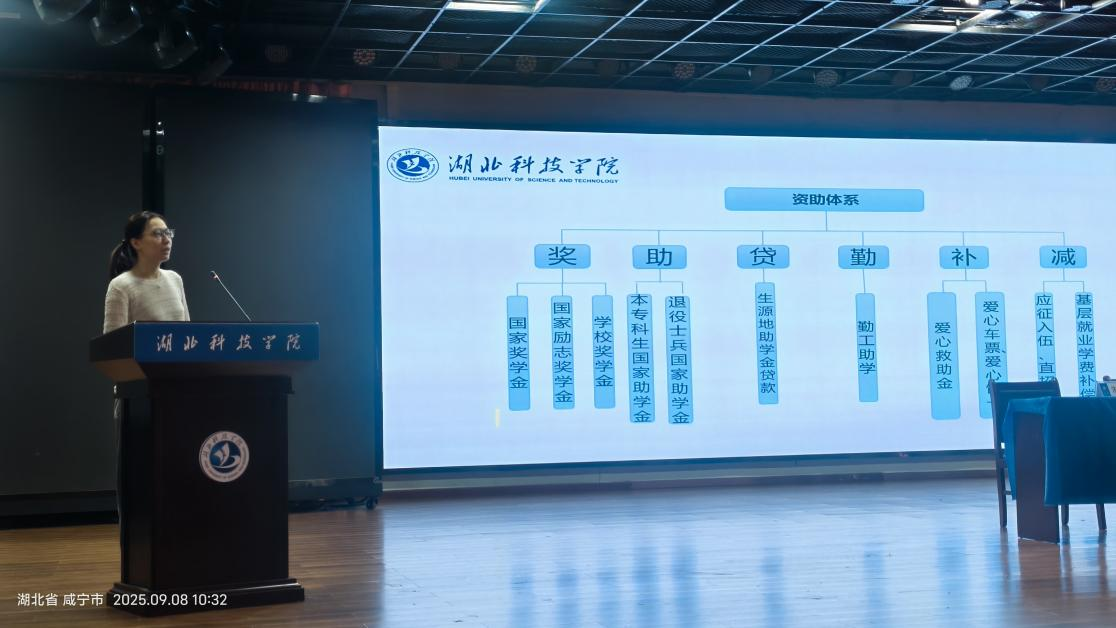 资助政策宣讲阶段,辅导员雷婷从“奖、助、贷、勤、补、减”几个方面,全方位介绍国家资助政策以及437必赢会员中心资助政策体系。重点介绍了生源地信用助学贷款的申请条件、办理流程、贷款额度、还款方式及利息补贴等关键信息;梳理了国家奖学金、国家励志奖学金、校级各类奖学金的评选标准、申报时间、奖励金额及评审流程,鼓励新生们勤奋学习、积极进取,在大学期间树立明确目标,争取获得各类荣誉与奖励;在助学金、勤工助学及临时困难补助等方面,详细说明了各类资助的申请条件、资助标准、发放方式,同时介绍了学校勤工助学岗位的设置情况,鼓励家庭经济困难学生通过自身努力改善学习生活条件。