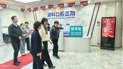 活动包含专题报告、临床参观与座谈交流三大环节。李从真总经理为口腔医学专业学生作了题为《口腔种植技术的演变与未来展望》的专题报告。随后,专家们参观了咸宁湖科口腔医院。在座谈交流会上,学院及咸宁湖科口腔医院负责人与来宾就人才培养、产学研合作等议题进行了深入探讨。