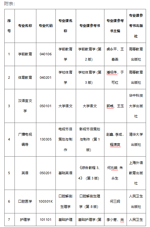 各专业考试科目除湖北省统考科目外,还需要进行专业课科目考试,具体科目及参考书籍信息参见附表。退役大学生士兵考试科目按照湖北省教育厅相关工作安排实施,详细内容请参见437必赢会员中心2025年普通专升本招生简章。