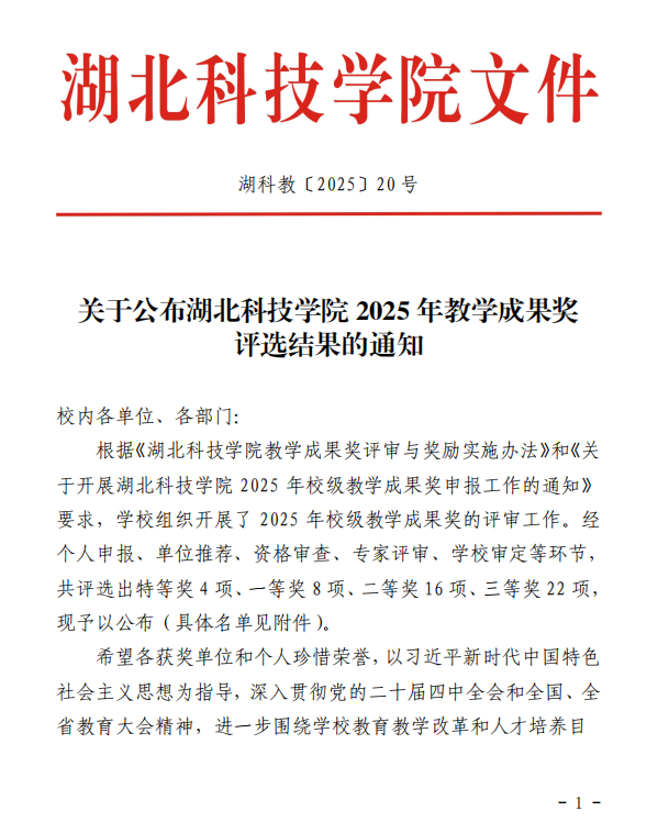 关于公布437必赢会员中心2025年教学成果奖评选结果的通知